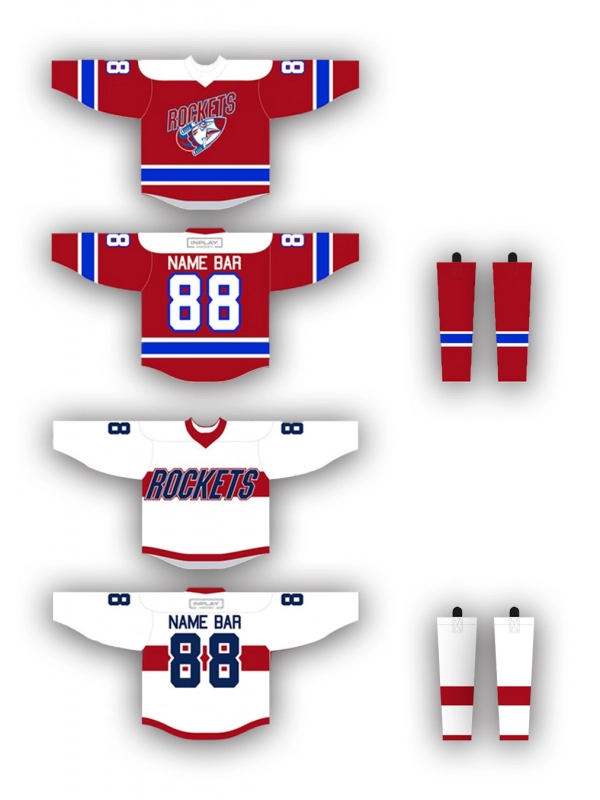 로켓츠 아이스하키 유니폼 + 스타킹 세트 (레드 & 화이트)