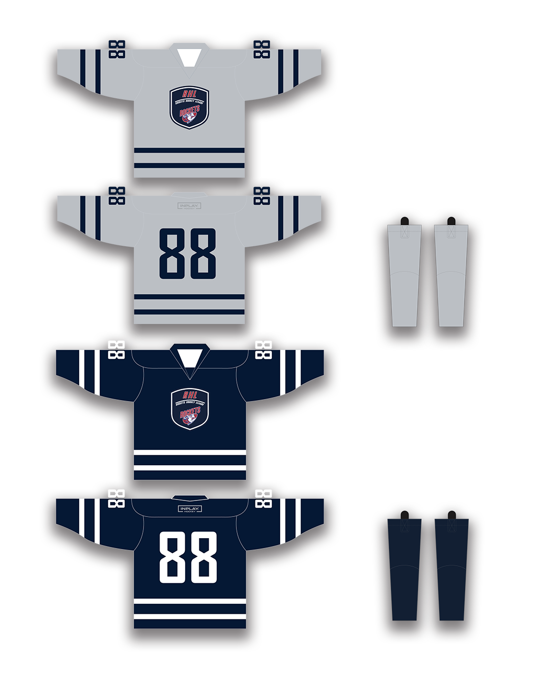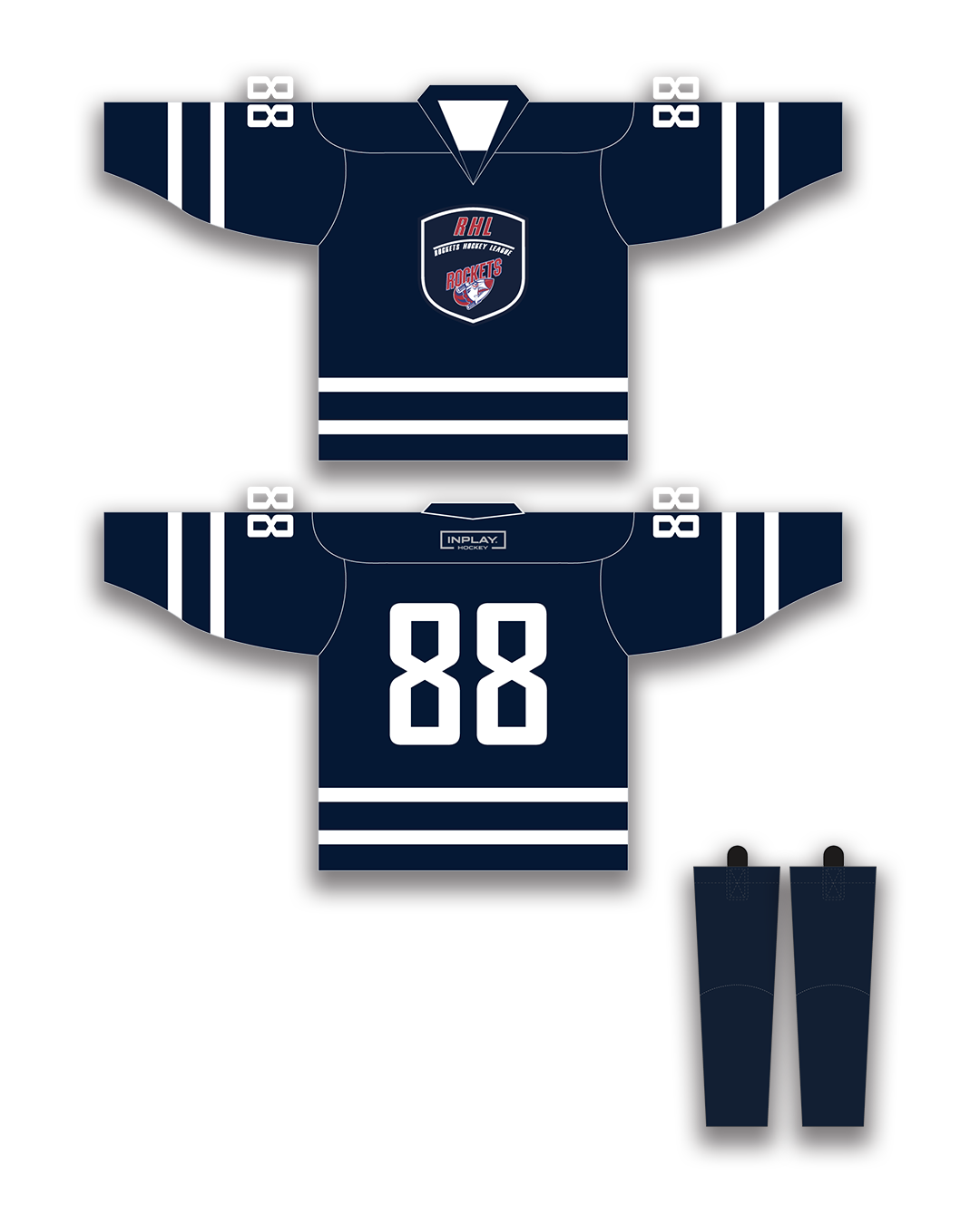 로켓츠 아이스하키 RHL 유니폼 + 스타킹 (그레이 & 네이비) 세트 상품 입니다!
